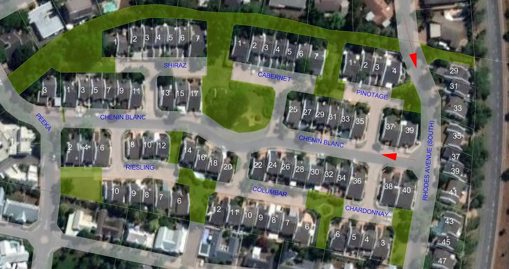 turn right into Van Reede St. into Die Boord. Then turn left into Rhodes North Avenue, pass a three stop, pass a